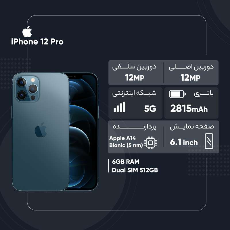 گوشی موبایل «iPhone 12 Pro» یکی از محصولات پرطرفدار شرکت اپل است که با چند ویژگی جدید و دوربین چهارگانه میتواند نظر مثبت خریداران را به خود جلب کند. اپل برای ویژگیها و طراحی کلی این گوشی از همان فرمول چند سال اخیرش استفاده کرده است. نمایشگر آیفون 12 Pro به پنل Super Retina مجهز شده است تا تصاویر بسیار مطلوبی را به کاربر عرضه کند. این نمایشگر رزولوشن بسیار بالایی دارد؛ بهطوریکه در هر اینچ از ابعاد 6.1 اینچی خود، حدود 460 پیکسل را جای داده است که این عدد دقیقاً با تراکم پیکسلی iPhone XS برابر است. قاب پشتی آیفون جدید هم از شیشه ساخته شده تا هم گوشی مشکل آنتندهی نداشته باشد و هم امکان شارژ بیسیم باتری در این گوشی وجود داشته باشد. البته قابی فلزی این بدنه شیشهای را در خود جای داده است و این بدنهی زیبا در مقابل خط و خش مقاومت زیادی دارد. همچنین، آب و گرد و غبار هم به راحتی روی آیفون 12 Pro تأثیر نمیگذارد و لکه و چربی هم روی این صفحهنمایش تأثیر چندانی ندارند. از طرفی دیگر، جالب است بدانید که آیفون جدید میتواند به مدت 30 دقیقه در عمق چهار متری آب دوام بیاورد. اما جالبترین و واضحترین تفاوت در این محصول جدید، دوربینهایی است که این بار به شکل چهارگانه در قاب پشتی جا خوش کردهاند. سه دوربین با سنسورهای 12مگاپیکسلی بههمراه دوربین چهارم از نوع عمیق TOF 3D LiDAR scanner عکسهایی با کیفیتِ کاملاً رضایتبخش را به کاربر هدیه میدهد. ازنظر سختافزاری هم این گوشی از تراشهی جدید A14 بهره میبرد که عملکرد بسیار خوب و قدرتمندی در اجرای بازیهای سنگین دارد. گوشیهای نات اکتیو با قرار گرفتن سیمکارتهای داخلی اکتیو میشوند و برخلاف مدل اکتیو پلمپ کالا باز نشده است. گوشیهای اکتیو برند اپل هم به این شکل هستند که به دلیل محدودیتهای برخی از محصولات اپل برای کشور ایران، در کشورهای همسایه بهصورت رسمی با یک بار قرار گرفتن سیمکارت، اکتیو شده و پلمپ میشوند و باید بدانید که این پروسه هیچ مشکلی در راستای گارانتی کالا بههمراه ندارد. پارتنامبرهای اروپا و ژاپن و امارات تک سیمکارت هستند و پارتنامبرهای مربوط به امارات هم از فیس تایم پشتیبانی نمیکنند. پارتنامبر JA (ژاپن) هم حتی در حالت سایلنت صدای شاتر عکس قطع نمیشود.